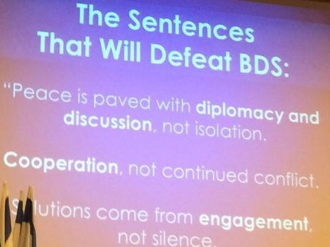 For instance, a slide presented at the conference instructed the propagandists to calls BDS activists “anti-Israel” rather than “anti-Semitic.”