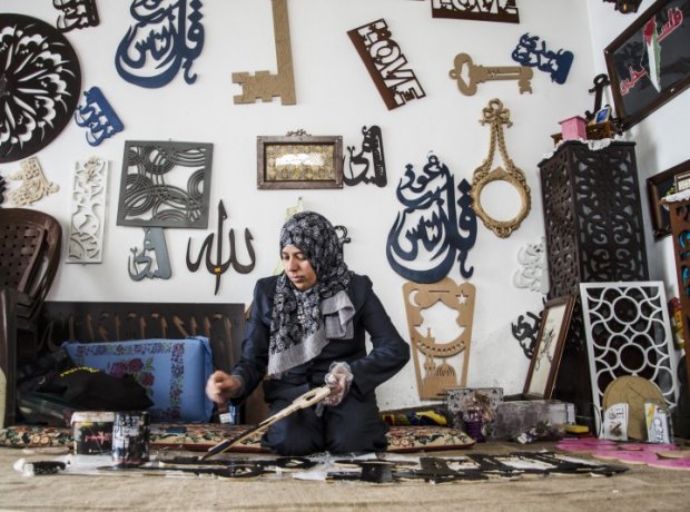 Samah Shahen ha 36 anni ed è cittadina di Gaza; da anni il suo piccolo negozio di artigianato in legno dona colore al centro del campo profughi di Al Bureij. Oltre ad affrontare una vita difficile nella Striscia di Gaza, Samah non si è fatta fermare da un handicap che l’ha colpita alla nascita: da bambina ha subito varie operazioni alla mano sinistra e questo ha portato a un peggioramento del tono muscolare degli arti superiori, complicando così ulteriormente molti dei gesti quotidiani che la accompagnano non solo nel suo lavoro, ma anche nella vita privata.