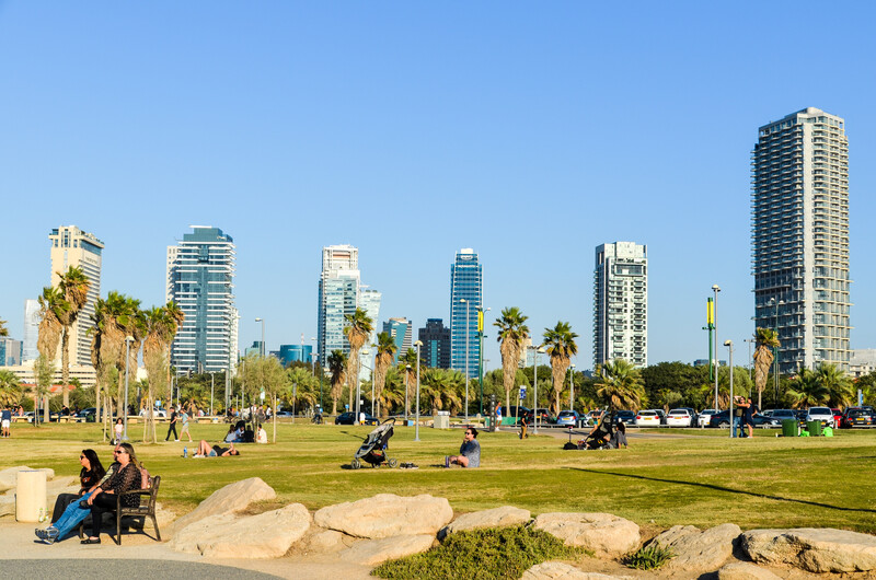 Il parco Charles Clore, costruito sopra le rovine di al-Manshiyya. (Jbodane)