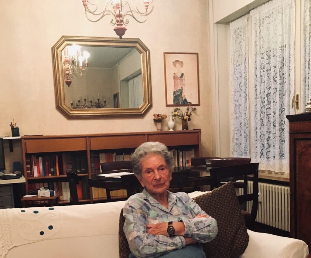 Vado a farle visita una domenica pomeriggio di settembre, poco prima di Rosh Hashanà, per ascoltare la sua storia e quella di Shorashim, di cui quest’anno ricorre il trentesimo anniversario. Raggiunto il palazzo, salgo le scale di quella che mi pare essere la scala G (“come Guido, mio marito”, mi aveva precedentemente spiegato Rosita nelle sue istruzioni telefoniche) e sul pianerottolo suono il campanello della porta con la mezuzà, ma nessuno viene ad aprire. Dopo qualche minuto in cui inizio a dubitare di trovarmi al posto giusto e suono di nuovo invano, Rosita compare dietro le porte dell’ascensore: “Hai sbagliato!” mi dice senza rimprovero “Questa non è la scala G!”. La seguo allora e le spiego che mi ero lasciata ingannare dalla mezuzà sull’uscio.
